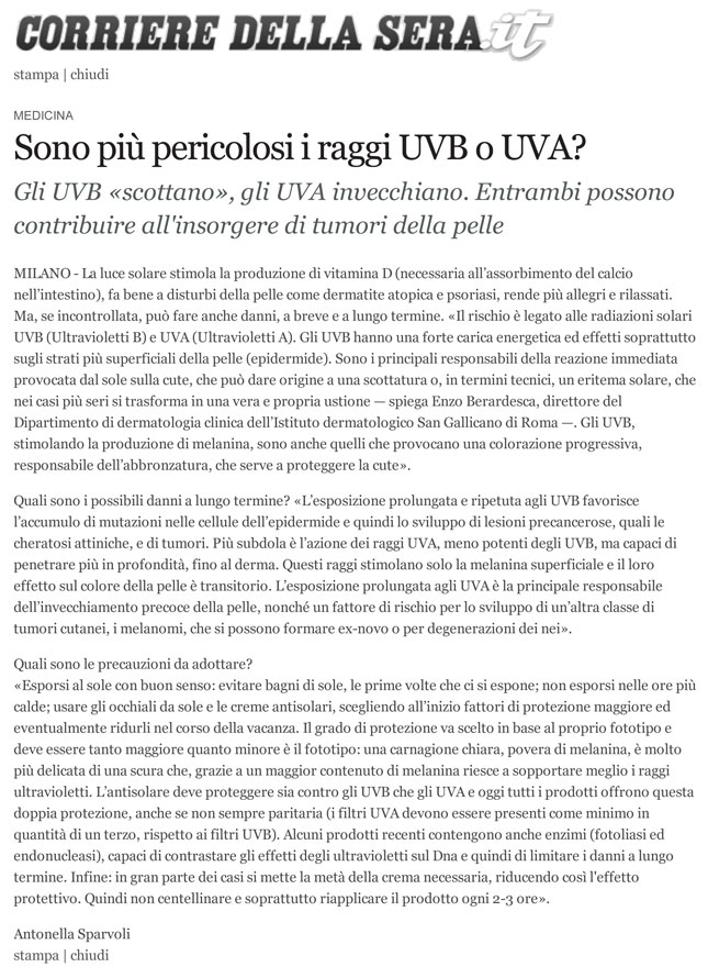 Corriere della Sera – Sono più pericolosi i raggi UVB o UVA?